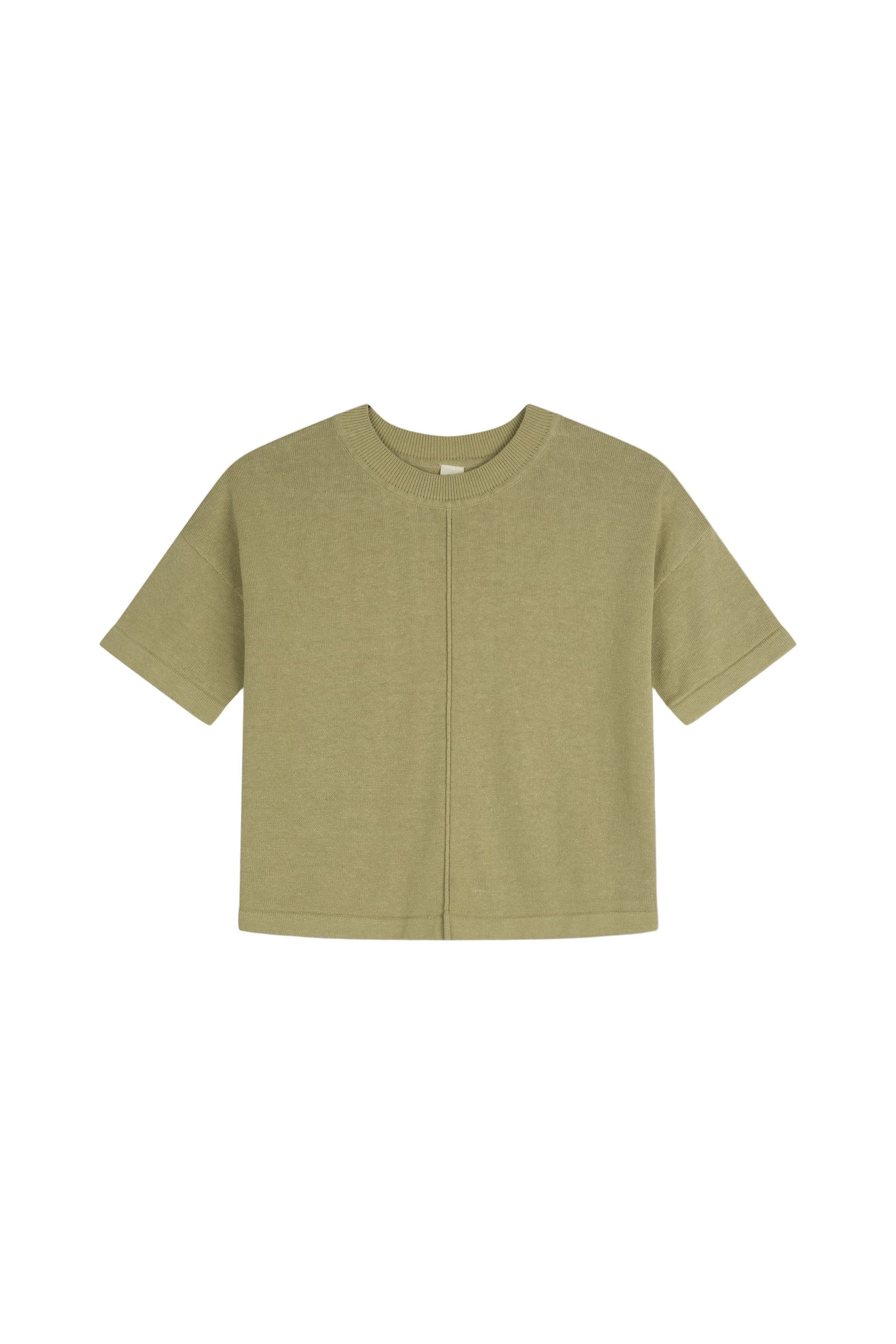 An easygoing essential, the Lightweight Knit Tee in Moss is designed with everyday comfort in mind. Crafted from a breathable blend of linen and cotton, it features raw edge detailing and a relaxed, oversized fit — perfect for layering or wearing on its own. Soft, airy and versatile, it’s made to move with your little one through every season.