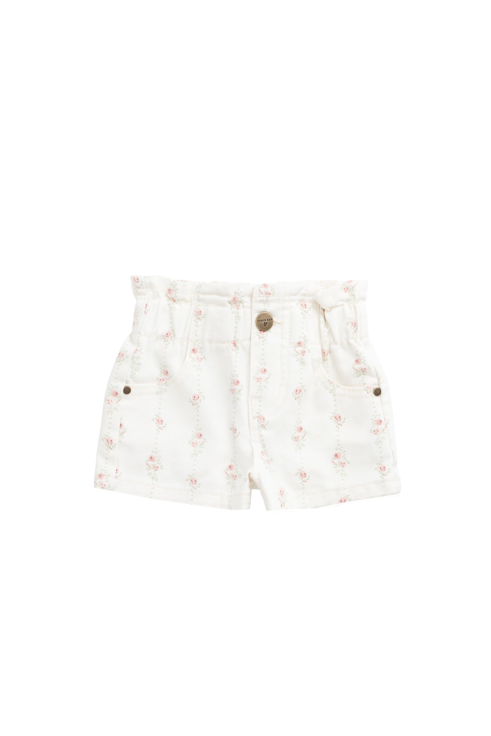 The Kara Short – Rose Trail is a beautifully crafted pair of shorts featuring a delicate vertical floral print in soft pink tones. Designed with an elastic waistband, two front pockets, and nickel-free metal button details, these shorts offer both style and practicality for your little one’s everyday adventures.