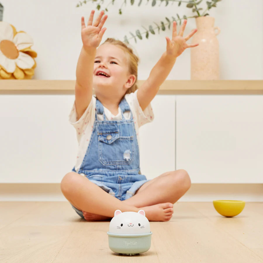 Introducing the Rocking Rollers Cat from Tiger Tribe such a fun and versatile kids toy. This 2-in-1 pal rocks back and forth, providing hours of entertainment. Or, remove the base, press down on your little pals head and watch it glide across the room on its built-in wheels. There's no limit to what your child can do with this whimsical critter rocking around their space!