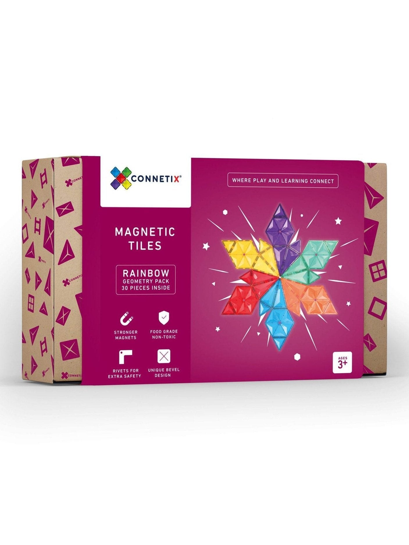 Encourage learners to explore aspects of geometry with the 30 Piece Geometry Pack Magnetic Tiles from Connetix, featuring hexagons and triangles in every colour to introduce children to shape, lines, angles, dimensions (length, width, radius), fractions, 2D and 3D shapes, plus magnetism all through PLAY. Add these rainbow hexagons and triangles to your collection and enjoy creating patterns, pyramids, pizzas, mandalas and so much more!