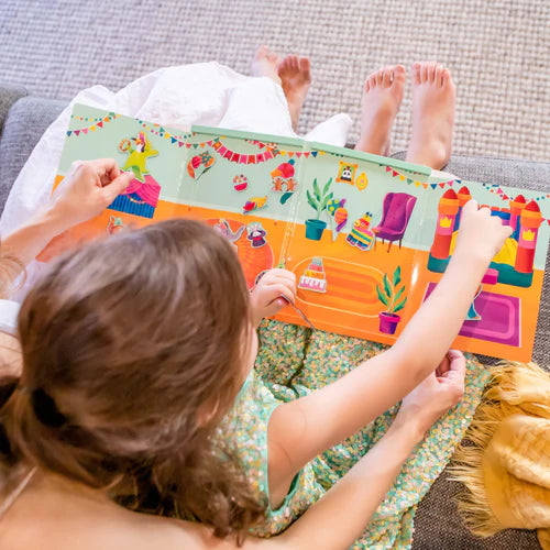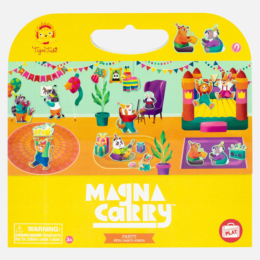 We’re throwing a party and you are all invited! Magna Carry Party pumps up the fun factor with a delightfully illustrated fold out, magnetic play scene, ready to fill with games and birthday decorations. Pass the parcel, pin the tail on the donkey, dress ups, bang a drum and make some noise. Then cake, fairy bread and yummy fruits galore. Oh dear! Can you see who’s fallen asleep in the corner?