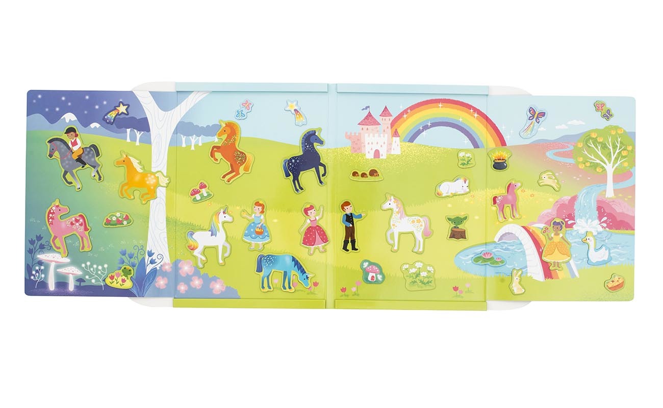 Magna Carry Unicorn Kingdom transports your little one to a magical rainbow world with an illustrated fold magnetic play scene. Meet unicorns of all shapes and colours, journey to the magic castle at the end of the rainbow or pick enchanted flowers. And if you are very lucky you might find the frog prince. Where is he hiding today?! And the best part – you can create a new scene every time you play. Then when you are finished, pack up is super fun with the ‘match the magnet pieces’ puzzle on the case! Job done.