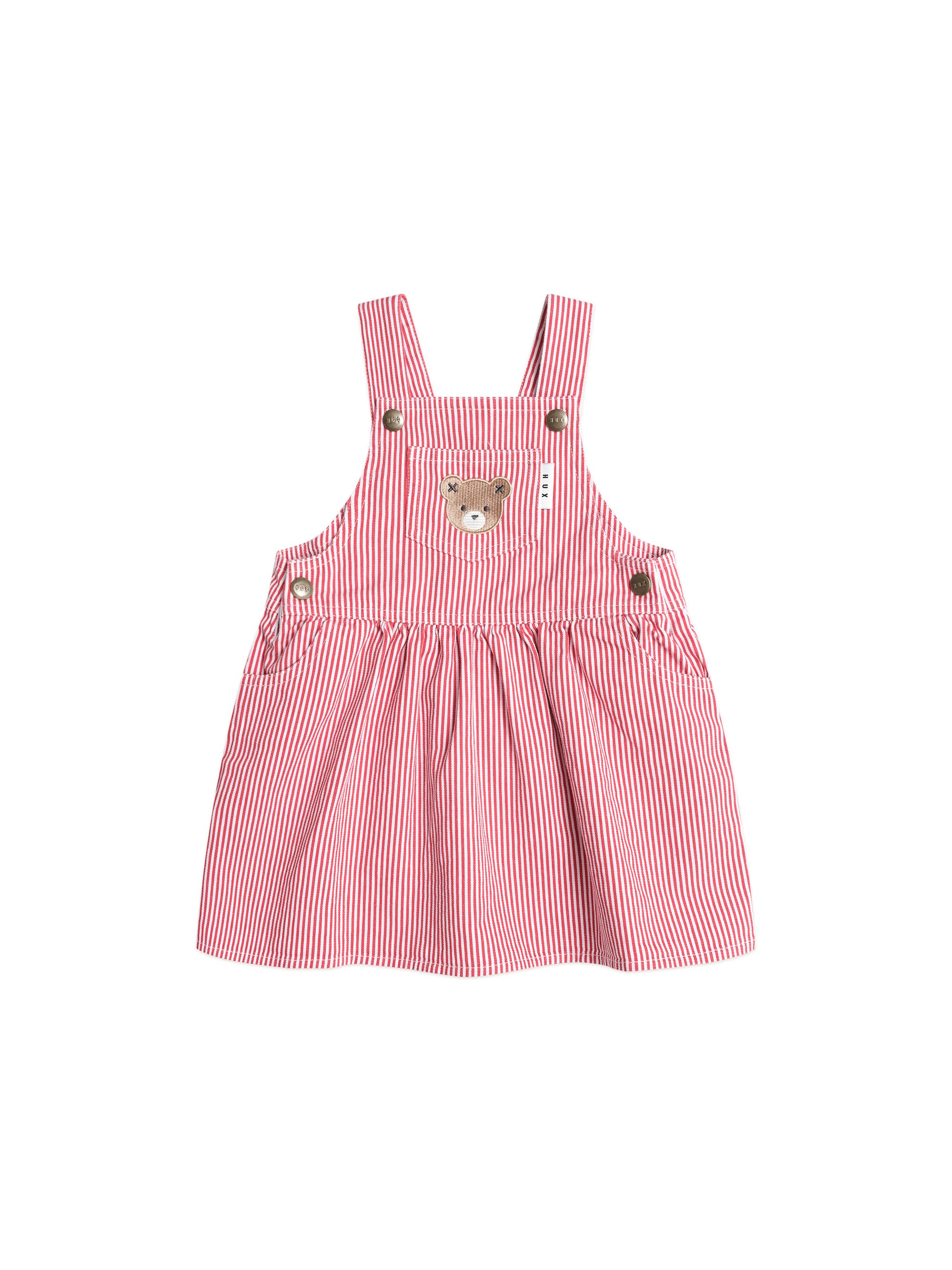 The kind of piece that gets worn to bits. This versatile pinafore dress is made from deliciously soft cotton in our red pinstripe. It features adjustable straps, deep pockets and a pleated skirt for easy wear. Style it over a tee or with a cardi for a look that’ll take you from one season to the next.