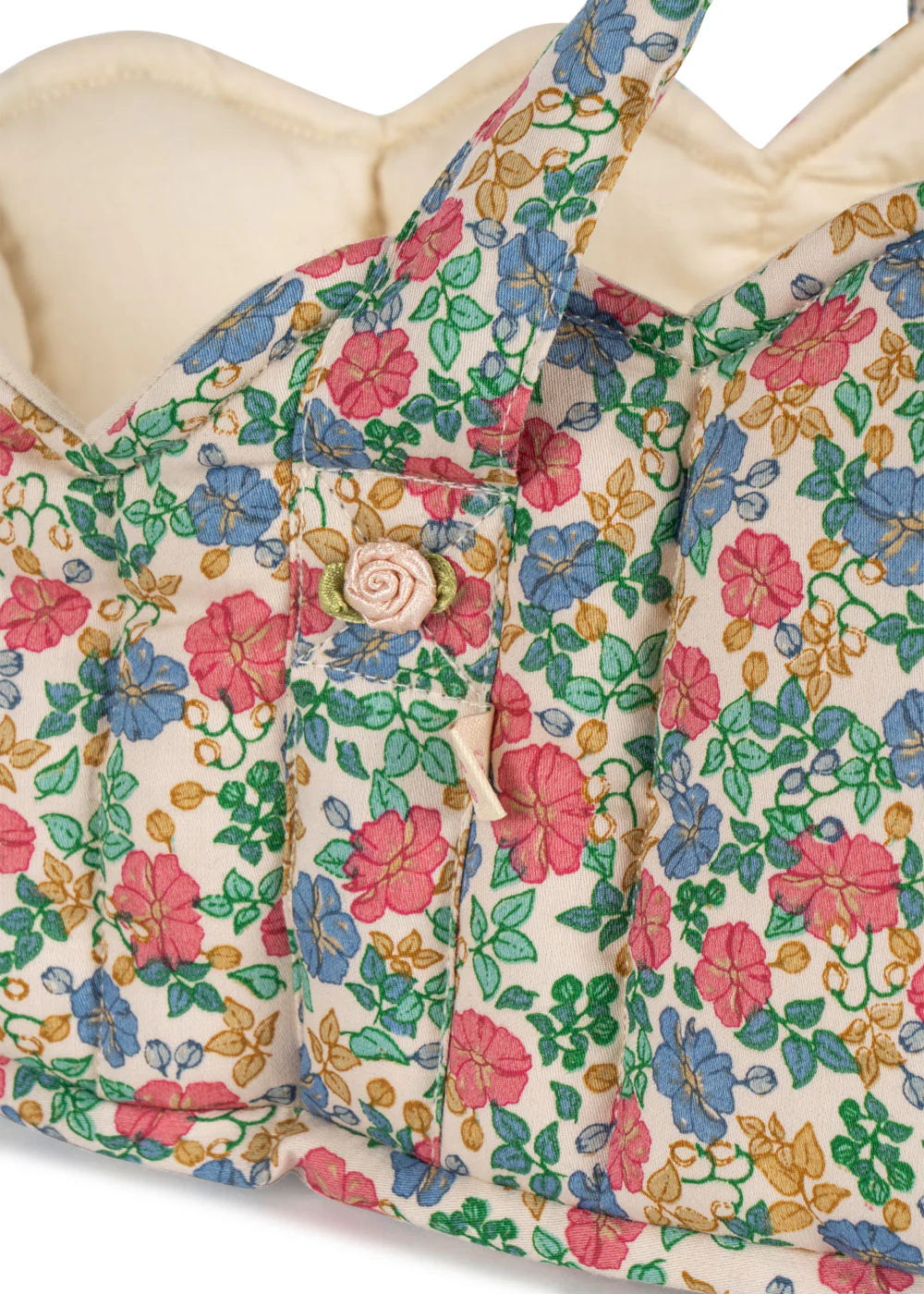 Beautifully crafted from 100% organic cotton, the Konges Sløjd Doll Carry Cot in the Fiola floral print design provides a luxurious and practical way for your little love to carry their favourite doll. With soft piping and scallop hems, this padded carry cot is not only stylish but also comfortable for your child's playtime. The convenient carry straps make it easy to bring along anywhere.