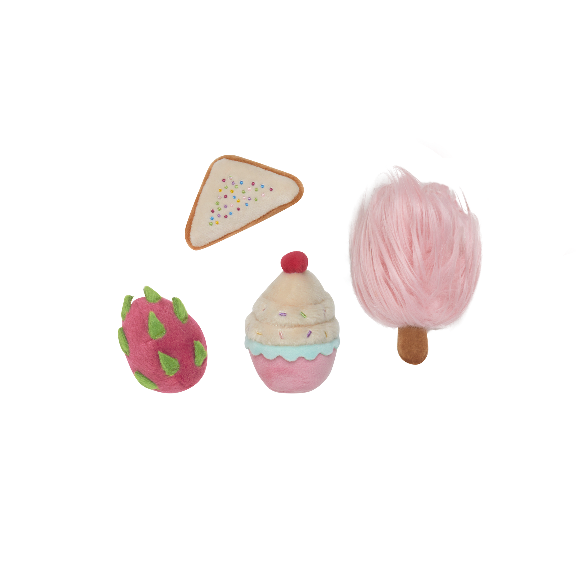 - Includes a whimsical mix of sweet treats like dragon fruit, a cupcake, and more.