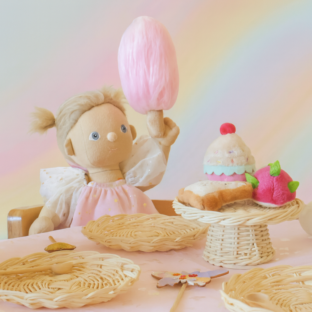 With magnetic magic built into each piece, these treats are made to stick (literally!) to Fairy Dinkum Dolls and Dinkum Pets, bringing snack-time storytelling to life. From fluffy fairy floss to a colourful cupcake, each bite-sized piece is designed to delight. Just the right size for little hands and big imaginations, this set turns any tea party or playdate into a feast of fun.