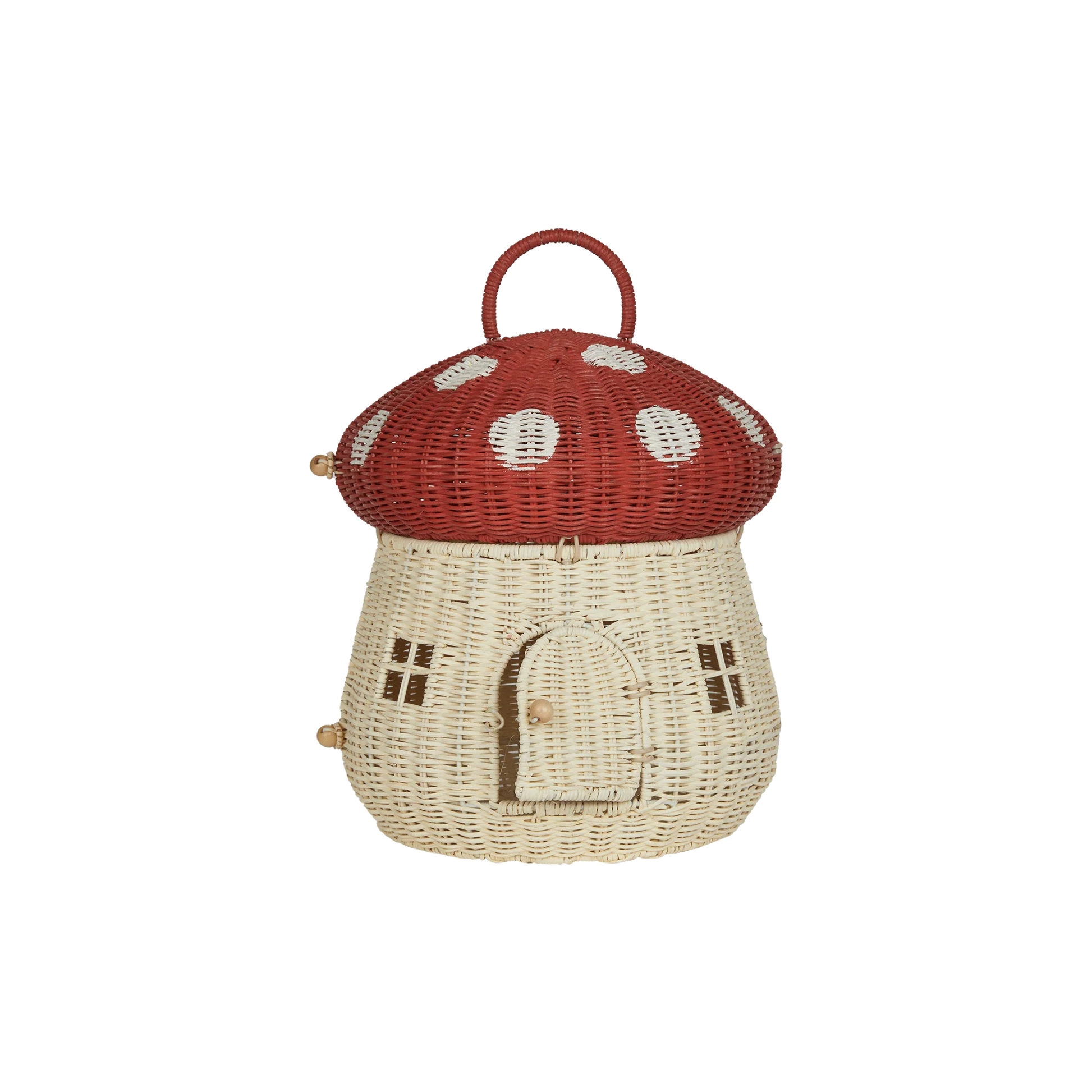 A whimsical home for tiny adventurers, the Mushroom Doll House in Red is the perfect place for your little ones’ Holdie Folk or Dinky Dinkums to settle in for imaginative play. Handwoven from natural rattan, this mushroom-shaped house features two cozy levels, one on the ground floor and a charming shelf that creates a second floor.