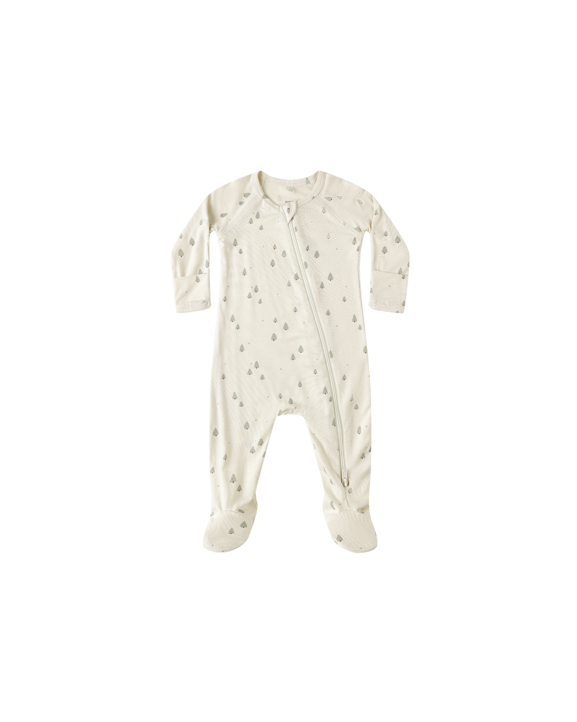 Full double-zip footie crafted from a soft and stretchy bamboo fabric. Fold-over hand mitts included on sizes NB – 3-6M.