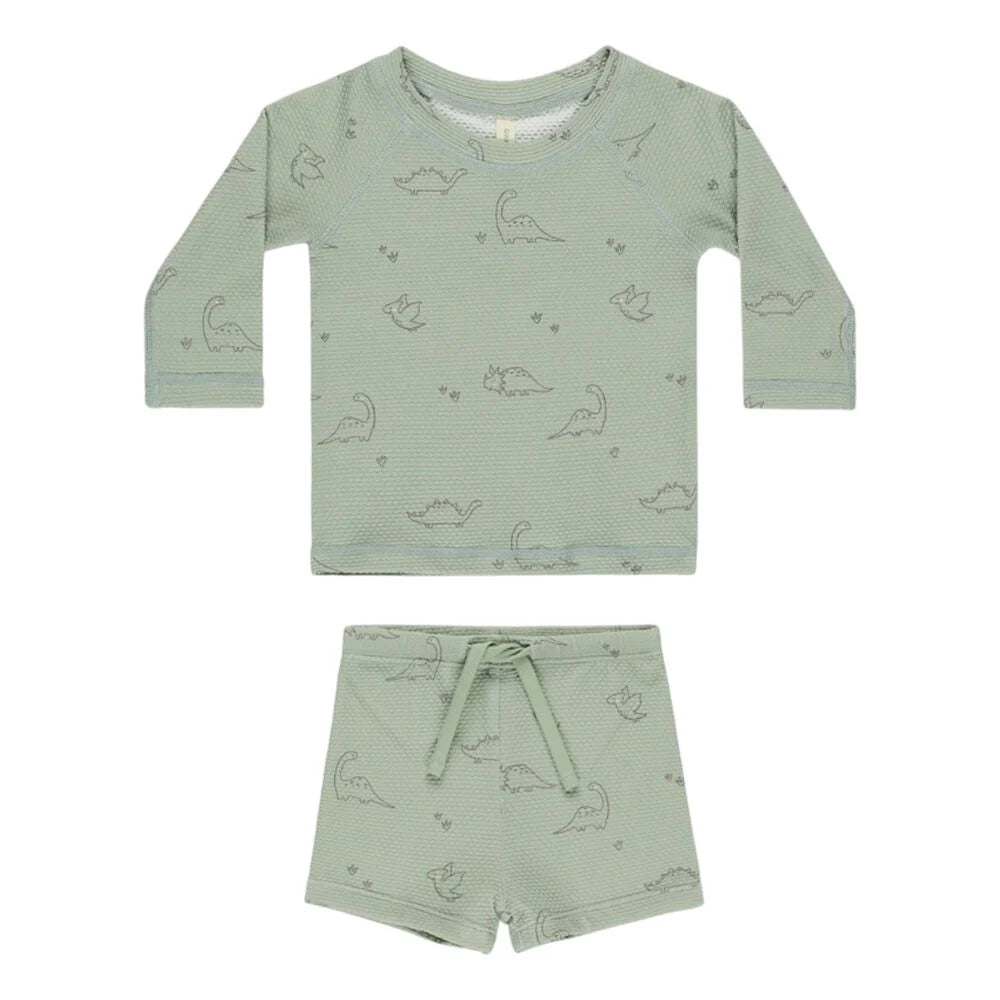 Quincy Mae Finn Rashguard and Short Set Dino Sage